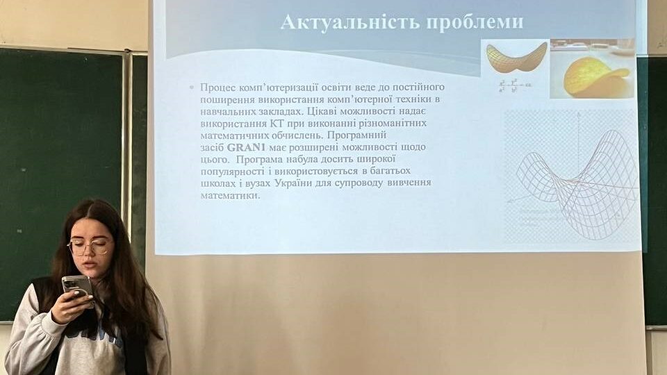 Кузь Вікторія представила свої надбання на тему “Застосування чисельного диференціювання функцій з допомогою програмного засобу Gran1”.