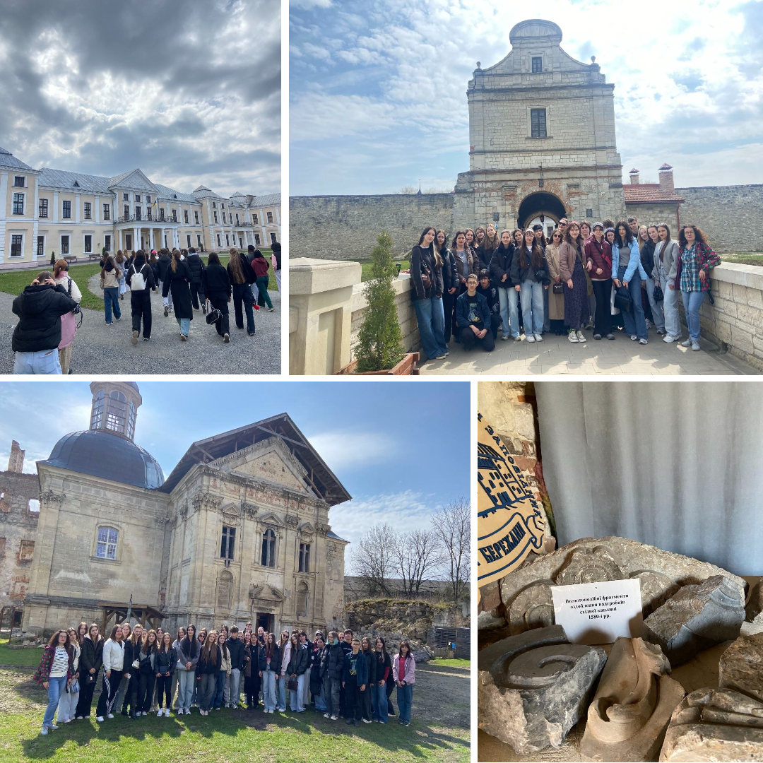 Учасниками подорожі стали студенти спеціальності «Туризм і рекреація», а також здобувачі освіти інших спеціальностей коледжу – «Правоохоронна діяльність» і «Дизайн», до яких долучилися й випускники. Така міждисциплінарна участь сприяла обміну досвідом та створенню динамічного освітнього середовища. Навчальний тур було проведено в межах апробації туристичного продукту, розробленого студентами, що дало змогу поєднати теоретичні знання з реальними умовами туристичної діяльності. Метою поїздки стало практичне тестування маршруту, відпрацювання організаційних процесів та набуття навичок проведення екскурсій. Програма туру була насиченою та пізнавальною. Учасники відвідали Бережанський, Тернопільський та Збаразький замки, де ознайомилися з унікальними пам’ятками історії, культури та фортифікаційної архітектури України. Екскурсійний супровід забезпечили професійні екскурсоводи, які наповнили подорож змістовною та цікавою інформацією. Особливе враження справив Вишнівецький палац, відомий як «малий Версаль», який вразив учасників своєю архітектурною вишуканістю, експозиціями та високим рівнем презентації історичного матеріалу.